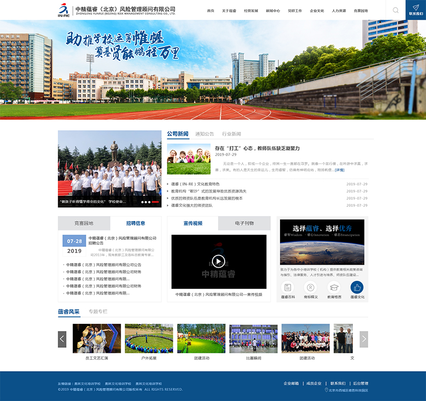Project Description 中精蕴睿(北京)风险管理顾问有限公司2013年,现有教职工及各科目教育专家80多人,致力于为各中小培训学校(机构) 提供教育相关政策咨询与指引、法律服务、人才引进与培养、师资队伍建设与培训、教学教研与学科创新、市场营销企划、文化 理念塑造与品牌输出的专业化教育管理全方位的综合服务。 Official website address 五指山http://in-re.com/ I want to share